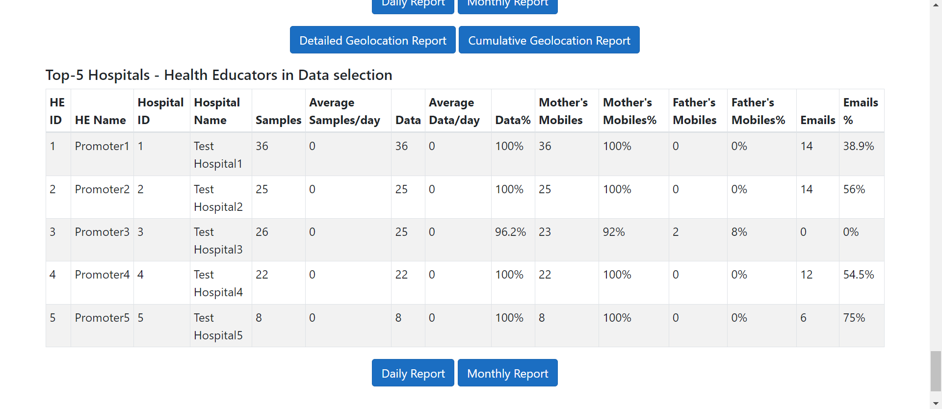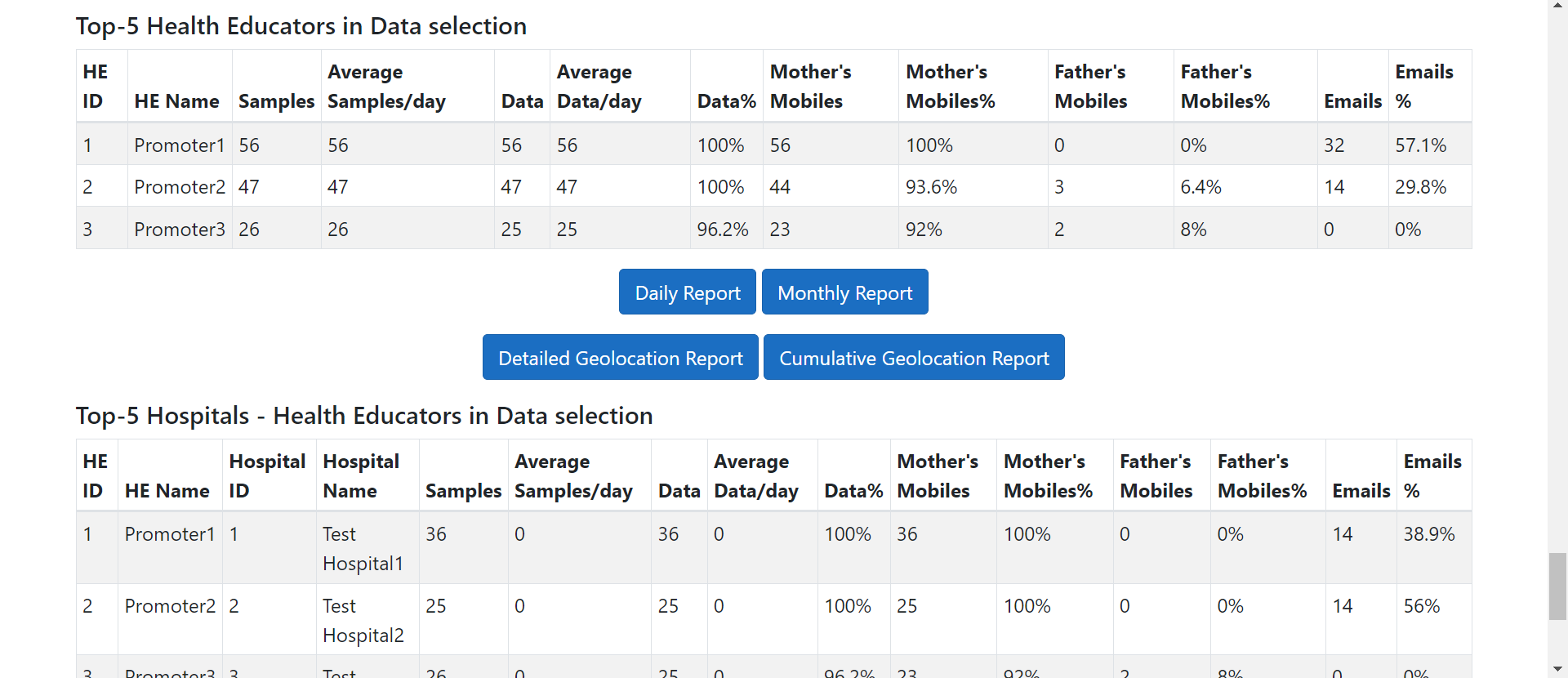 data from all Mama Data applications, offering unique charts for each program.